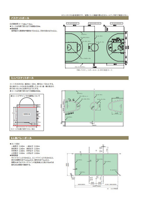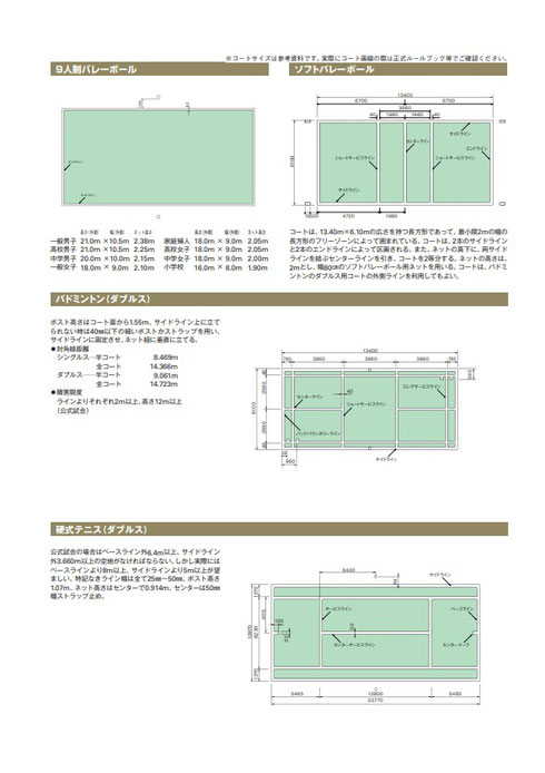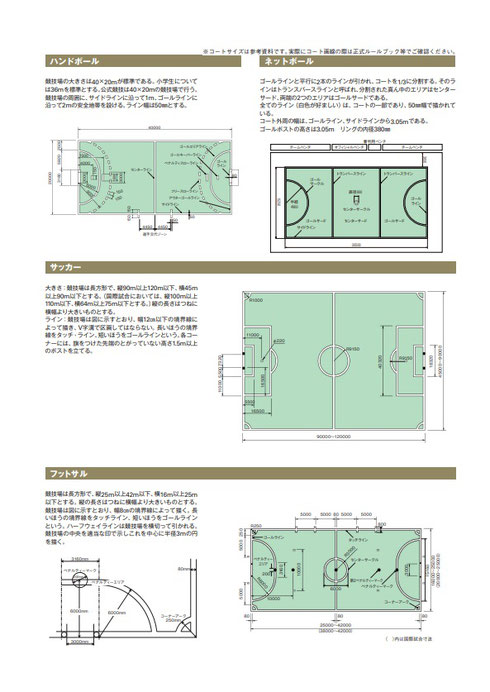 各種スポーツの公式コートライン寸法は、競技の種類によって異なります。以下に代表的なスポーツのコート寸法をまとめました。